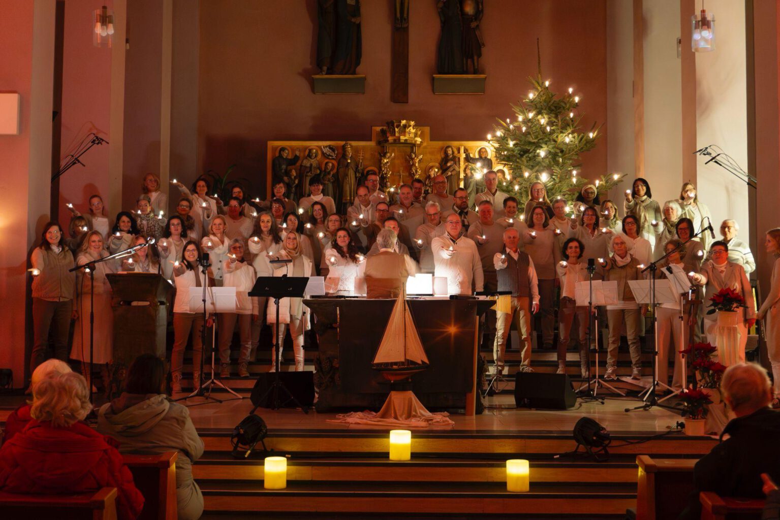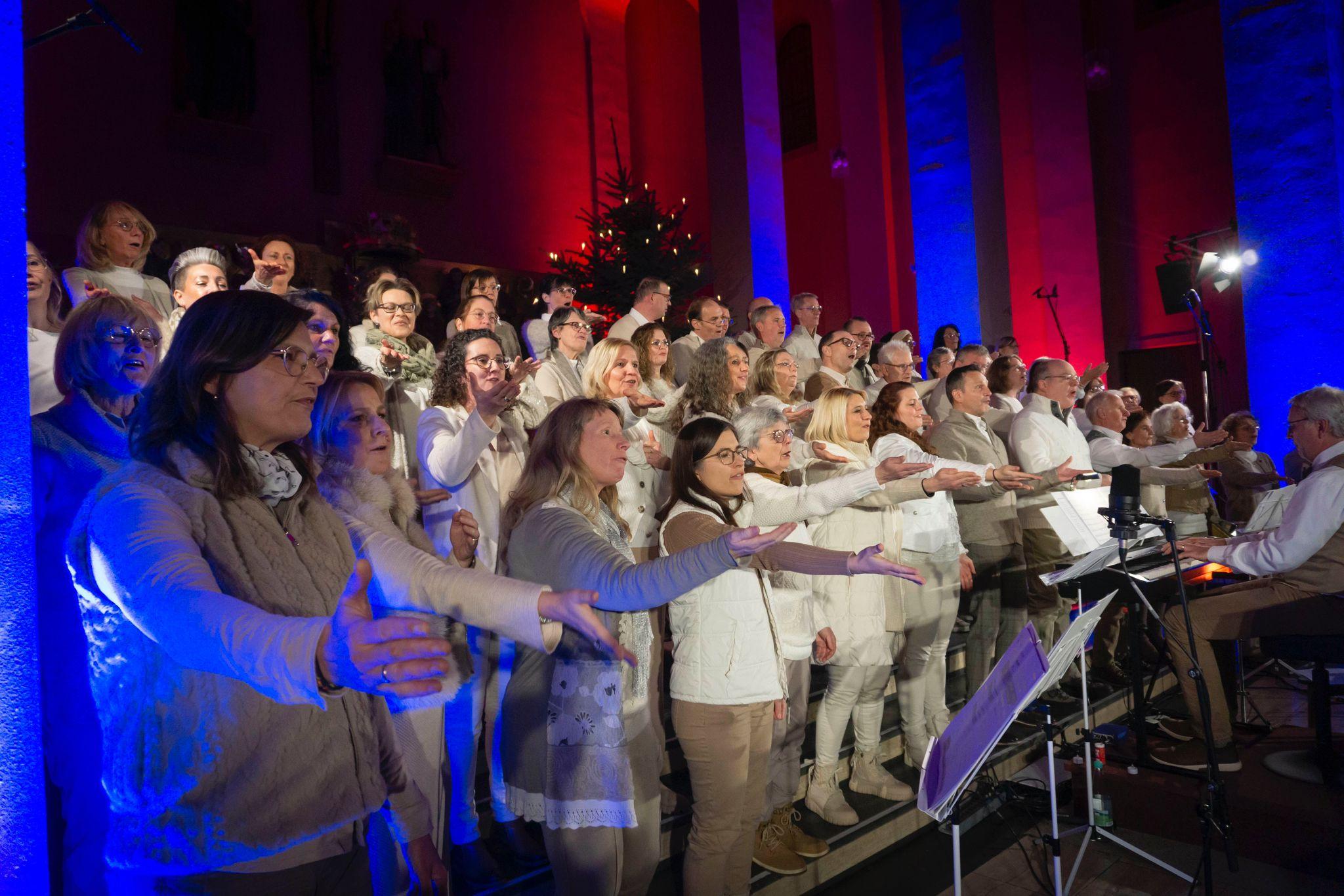 Unterstützt werden wir bei unseren drei Konzerten – in diesem Jahr alle am Kirchort Kärlich – von den Solistinnen Jennifer Becker, Simone Schroers, der Flötistin Lisa Weber und menonly. Die Moderation übernehmen Claudia Schambortski und Nicole Steffgen-Mannheim. Die musikalische Leitung liegt in den Händen von Torsten Schambortski, organisiert werden alle Konzerte von einem Team um Christoph Litauer. Auch in diesem Jahr setzt professionelle Tontechnik und Lichtinstallation Chor und Kirchenraum in Szene. Ein Konzerterlebnis mit allen Sinnen…